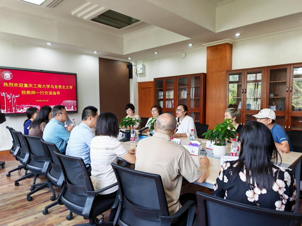 副院长刘艳对重庆工商大学william威廉亚洲官方一行来访表示诚挚欢迎,并就学院科研团队建设、马克思主义理论学科建设、国一流课程和省一流课程建设等进行了介绍,她表示,此次调研有利于双方交流互鉴、共谋发展;方芳老师介绍了我校《思想政治理论实践课》课程建设情况及未来发展规划,刘香菊老师介绍了我校《形势与政策课》的课程建设情况及经验心得。