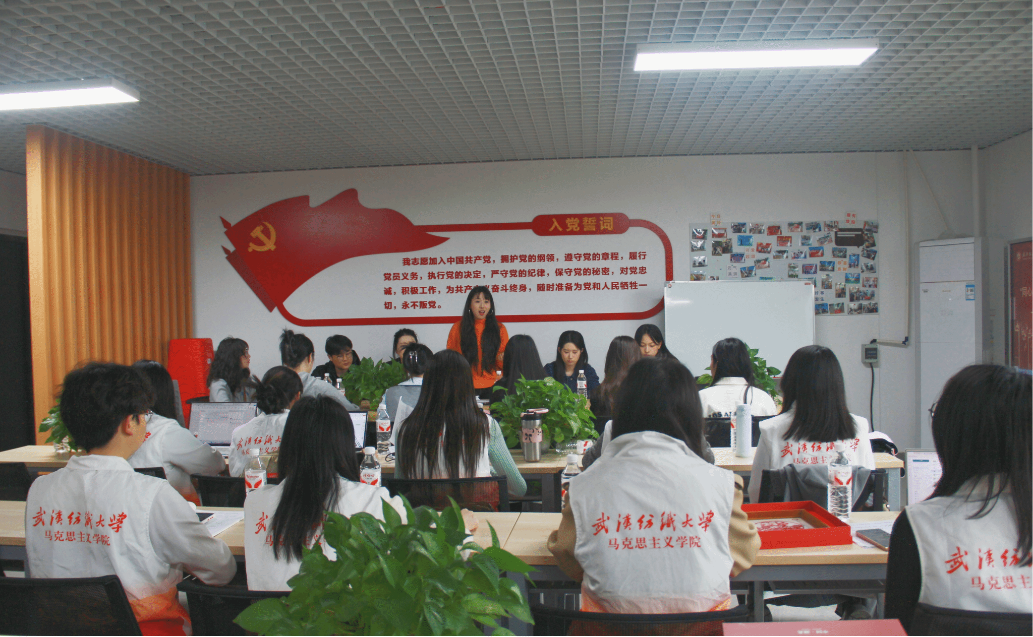 主题宣讲环节。学校马院学生李念等立足青年视角,鼓励同学们打破束缚、勇于试错,在实践中绽放青春光彩;蔡雨萌等带领大家重温习近平总书记七年知青岁月,感悟初心使命,汲取信仰力量。武汉轻工大学马院学生邴晓涵深入解读两会精神与“以旧换新”政策,阐释政策背后的时代价值与青年责任;颜欣然用翔实数据与鲜活案例,展现国家以人民为中心的发展思想,让两会精神可感可触。