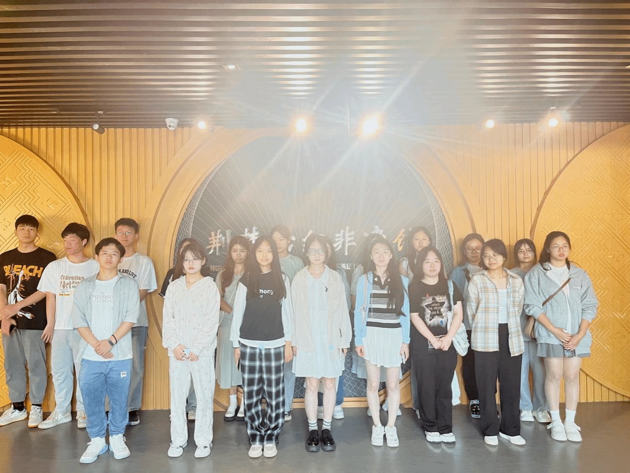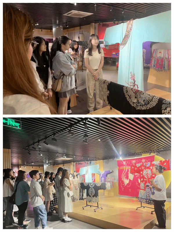 荆楚纺织非遗馆由序、织、染、绣、服饰、民俗等六个板块组成。非遗馆的工作人员向同学们介绍了古代纺织工艺的历史发展脉络,并展示了各种由传统工艺制作的布料与成衣。