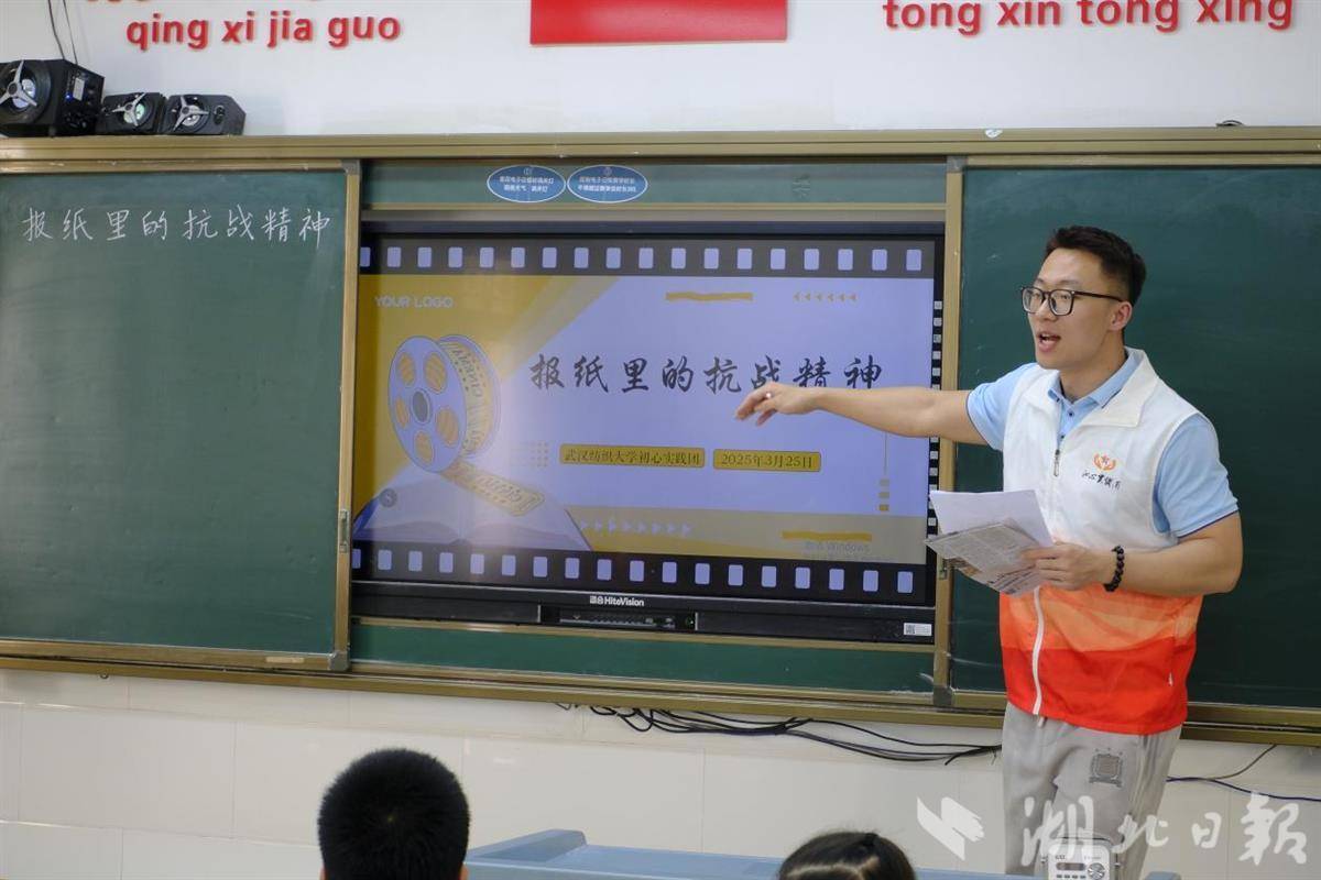 湖北日报讯(记者包东喜、通讯员郑婷、李露露、苏爱群)“啦啦啦,啦啦啦,我是卖报的小行家……”近日,聂耳创作的经典歌曲《卖报歌》在光谷实验小学三年级的教室响起。william威廉亚洲官方,williamhill官网初心实践团为同学们带来了主题教育课《报纸里的抗战精神》。