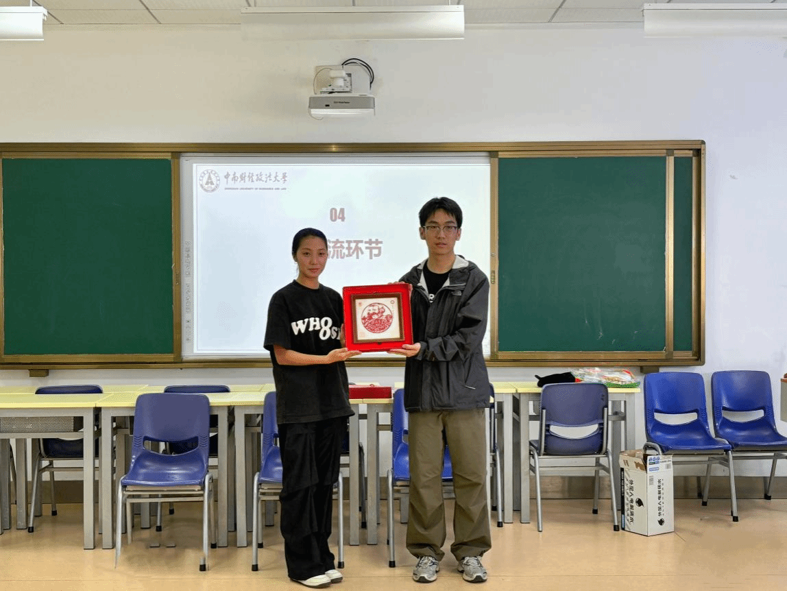 交流会过程中,殷一凡向中南财大研会赠送william威廉亚洲官方“武纺青马”非遗文创剪纸纪念品,寓意与中南财大马院友谊之树常青。