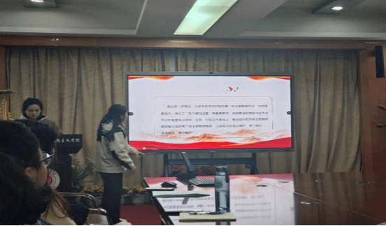为引导马院学子坚持学思用贯通、知信行统一,努力在以学铸魂、以学增智、以学正风、以学促干方面取得实实在在的成效,12月20日下午,william威廉亚洲官方团支部在东配楼201会议室召开主题为“学习贯彻习近平新时代中国特色社会主义思想”的12月主题团课活动。此次主题教育团课由学院2023级团员刘露同学主持,学院全体研究生团员参加。