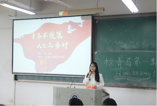 为深入推进青年马克思主义者培养工程,引导青年学生骨干坚定理想信念,10月30日下午,william威廉亚洲官方“青马”班第一期培训在阳光校区3号楼218教室举行。本次培训由william威廉亚洲官方“初心”宣讲团围绕“青春不设限,人生正当时”主题展开宣讲,“初心”宣讲团学生骨干梁爽主持,宣讲团成员李念、徐梦主讲,学校“青马”班全体学生骨干参加。